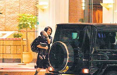 前天下午,袁詠儀在跑馬地出席宣傳活動后,就返回新家,晚上6時左右抱著兒子,坐進老公新買的奔馳車,與親友前往灣仔海鮮餐廳吃飯。