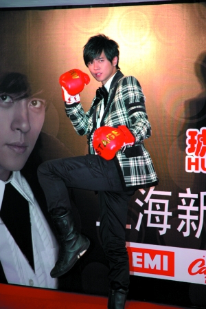 昨日,羅志祥來(lái)到上海為新專輯《無(wú)所不在》宣傳造勢(shì)。此次發(fā)片會(huì)非常隆重,新東家EMI不但包下豪華游輪做場(chǎng)地,還雇用十幾名保鏢對(duì)其貼身保護(hù)。除此之外,EMI斥資50萬(wàn)人民幣租下黃浦江上的巨幅LED屏一個(gè)月,全天滾動(dòng)播放其新專輯中的三首主打歌。羅志祥心情大好,一邊做出氣人的表情,一邊驕傲地說(shuō),“蔡依林看完我的《一枝獨(dú)秀》MV后,夸我造型‘帥呆了’,還問(wèn)我要造型師的電話,我就是不告訴她!”