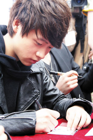 快男魏晨、俞灝明、姚政前日現身珠海,為3月1日將在那里舉辦的快男演唱會簽售門票,數百名粉絲不懼雨點,仍熱情助陣。采訪中,有知情人透露,魏晨近期以150萬兩年的價格訂下休閑服飾的代言,并打算在北京買車買房。魏晨承認因工作需要想在北京買房,目前已看中一套100多萬的物業,不過,不肯透露代言具體費用的他,也辯解稱買車不是為自己,而是送給爸爸。