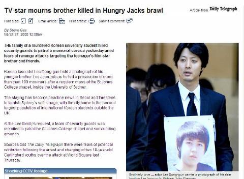3月26日,李東健的弟弟生前就讀的悉尼大學的韓人留學生會,在學校某教堂內為其安排追悼彌撒。李東健及其家人前來參加。