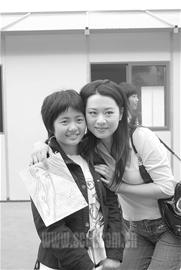 文體明星們來到由中國青少年發展基金會臨時捐贈、修建的“抗震希望小學”,將足球、籃球、球鞋、文具盒、課本……各種各樣滿載著愛心的禮物送到了孩子們的小手中。許多小孩子面帶笑容,一個大眼睛的6歲男孩,卻滿臉驚恐地躲在教室角落,不敢上前。“他叫陳陽躍,家里房子垮了,父母在外地打工,家里只有爺爺奶奶。他被嚇壞了,現在都不敢怎么說話。”媛鳳立刻把準備好的文具盒和唐詩卡片塞進陳陽躍的手里,還親吻了他的臉頰,陳陽躍的表情仍是呆呆的。一旁的馬薇看得眼含淚花,她把陳陽躍輕輕地抱在懷里,耐心地說:“不怕不怕,阿姨教你念‘唐詩卡片’。”一遍又一遍,沉默的陳躍陽動起了嘴唇,最后聲音漸漸大了起來,臉上也有了一絲笑意。