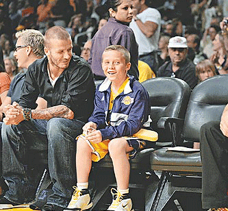 小貝帶長子布魯克林看NBA總決賽。