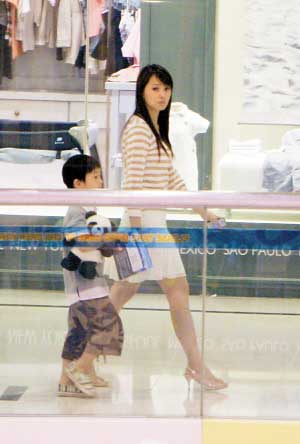 日前,伊能靜主演的新劇《三個(gè)女人的秘密》在北京殺青,從片場回到家中的伊能靜顧不上休息,又帶著助理和一個(gè)五六歲大的小男孩一起逛商場。伊能靜牽著兒子的手,高昂著頭,表情嚴(yán)肅,先逛了兩家首飾店,她看得很仔細(xì),但小哈利則顯得很不耐煩。后來伊能靜帶著兒子去了幾家兒童玩具店和文具店,最后他們一起來到商場里的一家餐廳吃飯。在伊能靜和兒子逛商場的過程中,雖然不時(shí)有人認(rèn)出她來,但沒有人上前去打擾他們,因?yàn)橐聊莒o表情冰冷,步子很快,并不像是一個(gè)溫柔體貼的母親,仍然還是一副明星派頭。