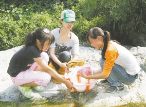 下午蔡依林又出發趕往朝天區羊木鎮白云村看望那里的受災孩子。帳篷里,一名12歲的小男孩李糕引起了Jolin的注意,他小小年紀便包攬了家里的家務,洗衣、做飯的同時還不忘努力學習。蔡依林讓小李糕拿出自己的語文課本,選他自己最喜歡的課文教她念,李糕選了一首唐詩,似模似樣當起了老師。隨后,蔡依林又鉆進了一頂帳篷。再次出來時,身旁多了兩個女孩子,其中一個還拿著幾件臟衣服。一行人居然來到鄉間的小溪邊,蔡依林和兩個女孩子便在清澈的溪水中洗衣服。別看平時蔡依林嬌生慣養,還留著漂亮的水晶指甲,可是做起家務活來一點不含糊,讓人刮目相看。不過,在搭建帳篷時,身材嬌小的她卻搞不定。一旁的工人教了她半天,這才終于搭起了一頂。