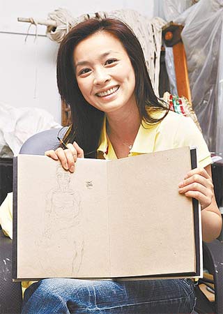 張庭開心地秀自己的素描本。