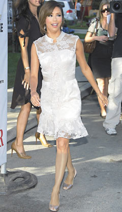據臺灣“聯合報”報道,33歲的伊娃隆格莉亞在與籃球明星東尼帕克結婚后,不少人都很好奇他們何時會有下一代。最近伊娃隆格莉亞懷孕的傳聞紛紛出現,她的經紀人卻說她只是稍微變胖一些。日前她出席Alma獎的發布記者會,因穿上一件正面有白紗裝飾的洋裝,從側面看還真有一點像懷孕的樣子。