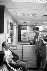 圖中坐著的兩位即被打的香港記者
