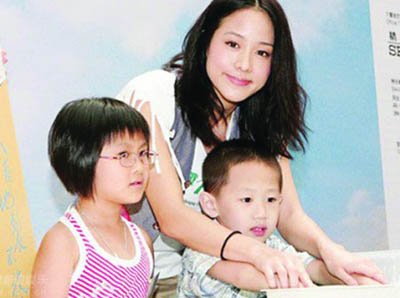 林嘉欣10日以“苗圃助學大使”身份出席在奧海城舉行的“苗圃行動” “挑戰12小時”激活儀式,林嘉欣與兩個小朋友齊按手印寫心意卡,活動籌得的善款將全部用于四川地震災區學校重建。