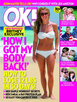 小甜甜布蘭妮身著白色比基尼亮相最新一期《OK!》雜志封面。26歲的布蘭妮比之前顯得苗條了很多,精神狀態也較之前更好了。布蘭妮在比弗利山莊的家中接受了該雜志的專訪,談起了自己的轉變: