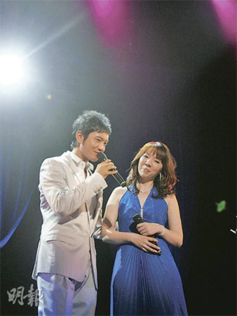 黃曉明與岡本真夜合唱《新上海灘》片尾曲《就算沒有明天》。來源:香港《明報》