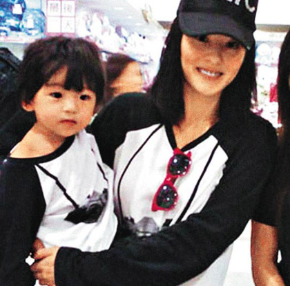 張柏芝日前與兒子穿上母子裝上街,小Lucas樣子精靈可愛。