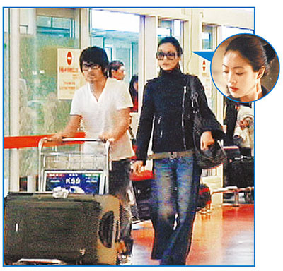 曹格(左)與吳速玲今年2月被拍到現(xiàn)身桃園機場。《壹周刊》