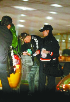 董潔、潘粵明乘出租車去機場,開始了他們的蜜月之旅。