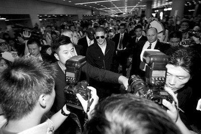 隨著米勒的出現,在場的數十家媒體、上百名粉絲、幾十個安保人員便如同突然上足了發條。他們形成了一個以米勒為中心的漩渦,不停把周圍的人卷進來,又慢慢地拋在身后。閃光燈的密度甚至達到了每秒數十次,將碩大的到達大廳照得如同白晝。