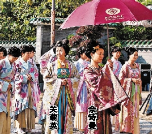 同日佘詩(shī)曼就以一姐姿態(tài)“統(tǒng)領(lǐng)”關(guān)菊英、米雪、楊怡等人拍攝古裝重頭劇《劉三好》(暫名)。巡禮片中,每逢佘詩(shī)曼、關(guān)菊英、米雪拍攝,均有一大班宮女尾隨營(yíng)造氣勢(shì),加上是女人斗爭(zhēng)的戲,令人聯(lián)想到有日劇《大奧》的影子。