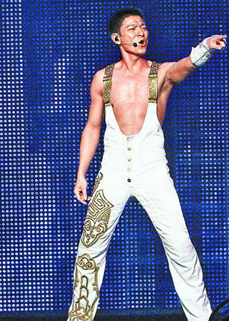 盼了6年,臺灣歌迷終于等到劉德華!昨晚他在臺北小巨蛋開唱,47歲的他像一條活龍,開場就露腹肌、在萬里長城的LED螢?zāi)磺把莩吨袊恕,氣勢磅礡。這位萬千粉絲心目中永遠(yuǎn)的不老偶像,一開口就說:“我回來了,有沒有想我?真的有嗎?”挑動萬名觀眾的心。美中不足的是,他在香港演出時有被電流劈過的特技,臺北場卻因舞臺規(guī)格無法呈現(xiàn)。