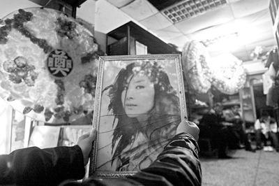 明星黑白照竟擺在花圈店