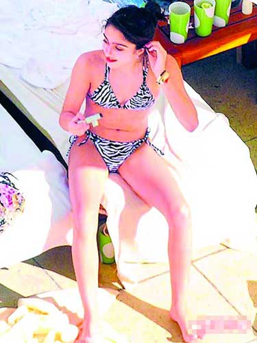 娜姐”麥當娜赴南美巡演,女兒露迪絲跟著去玩,在飯店泳池畔日光浴。今年12歲的她剛開始發育,卻學好萊塢女星穿上比基尼秀身材。