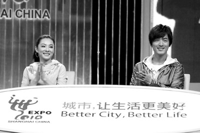 胡歌通過衛星與香港明星進行城市互動體驗
