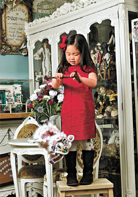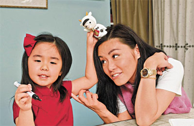 中新網2月2日電 鐘鎮濤(阿B)女友范姜為了令女兒鐘懿多學一點中國傳統文化,早前趁春節兩母女一起炮制紙黏土牛牛公仔,不過耐心的范姜和好動的女兒,合拍程度有待改善。范姜說現年4歲的鐘懿,在新春只學會當場拆紅包及魚蝦蟹,不過在年初一也會跟哥哥姐姐一起跪地斟茶給長輩。