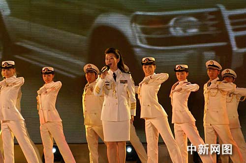 中新網(wǎng)湛江7月28日電 (徐建恩 劉靖)二十七日晚,海軍政治部文工團(tuán)團(tuán)長高山、副團(tuán)長宋祖英率領(lǐng)的“文化服務(wù)海疆萬里行”文藝演出隊(duì),在湛江某軍港進(jìn)行專場演出,慰問南海艦隊(duì)駐湛官兵。