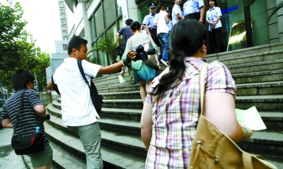 上午8點,距離開庭時間還有1小時,記者在靜安法院門口看到,多名法警已經在門口維持秩序。“平時8點半上班,今天都提前來了。 ”一名工作人員告訴記者,為了這次開庭,法院做了充分準備,并購置了多臺設備。