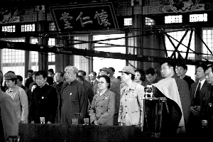 委員們參拍的是第一屆全國政協會議的場面,劇組負責人介紹,這場的主要劇情為周恩來宣布會議開幕、全體人員向為新政協作出努力的馮玉祥等人士默哀,并選舉中央人民政府委員會。