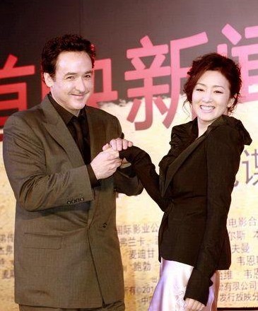 好萊塢新片《諜海風云》里,約翰·庫薩克和鞏俐愛得驚天動地、轟轟烈烈,昨天的全球首映式上,要兩人擺個親密姿勢,約翰卻只敢拉起鞏俐的手背輕輕一吻。對于鞏俐,約翰以一種絕對欣賞的眼光看待:“我看過她演的《菊豆》《活著》,非常棒,她可以算是全世界最優秀的女演員。”