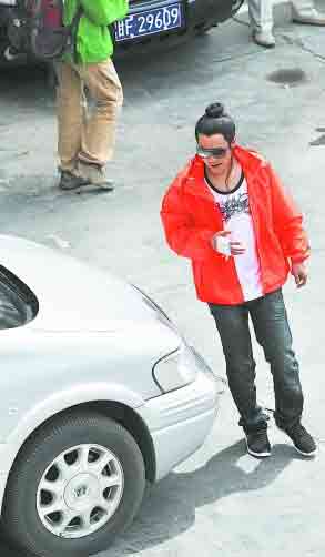 因?yàn)楦拭C的風(fēng)沙較大,天氣預(yù)報(bào)昨天傍晚還會(huì)有沙塵,所以老謀子可以說是全副武裝,胸前挎著墨鏡,脖子上還戴著紅黃相間的牛仔圍巾,穿著他最喜歡的大紅色外套,外套上竟然寫著“第29屆奧林匹克運(yùn)動(dòng)會(huì)開閉幕式導(dǎo)演組”的字樣,不知老謀子是否希望執(zhí)導(dǎo)北京奧運(yùn)會(huì)的紅火運(yùn)氣能帶到《三槍拍案驚奇》劇組中來。已經(jīng)兩年沒有拍戲的張藝謀,看見記者顯然有點(diǎn)吃驚,但對(duì)于記者的追問,他也只是笑而不答。
