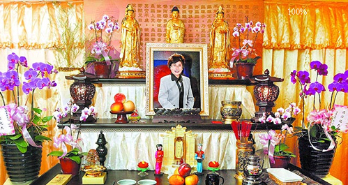 臺灣“蘋果日報”消息,文英的兒女們在板橋自宅客廳設立靈堂,并放上1張她笑得開朗的半身照,彷佛她的笑語、罵聲還在身旁;昨天一早馬英九與夫人周美青便趕往吊唁,馬英九神情肅穆哀戚,上完香后還一一向家屬握手致意,文英的大女兒一度哭倒在周美青的懷抱里,讓人十分不舍。干女婿何英哲說,文英住院時,馬英九曾想前往慰問,他當時對干媽說:“你如果要讓他們來就握緊我的手。”結果她馬上松開手,意即不愿勞師動眾。