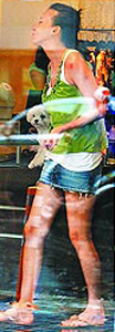 中新網(wǎng)8月10日電 蕭薔日前在莫拉克臺(tái)風(fēng)來襲期間,自家陽臺(tái)遭大型燈球砸中,人雖無恙,心有余悸;臺(tái)風(fēng)剛走,昨天她冒雨上街掃貨,購物中愛犬還突然失控在店內(nèi)狂奔