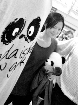 孫燕姿看到“燕窩”捧上熊貓,竟然也尖叫了一聲:“好可愛”。隔著“人墻”孫燕姿踮起腳尖將熊貓接過來,夾在身上向電梯口走去。