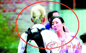 當日,買紅妹在北影試妝,并拍攝定妝照。“胡須男”則在一旁做起了助理的角色,寸步不離買紅妹的左右,照顧得十分細心。趁著休息,“胡須男”還為買紅妹點了一根香煙,誰知剛抽了幾口就要開拍,買紅妹只好把煙交給“胡須男”,并對著“胡須男”做出一個親嘴的動作。雖然旁邊有眾多工作人員,但兩人看來并不避諱,舉止很親密。
