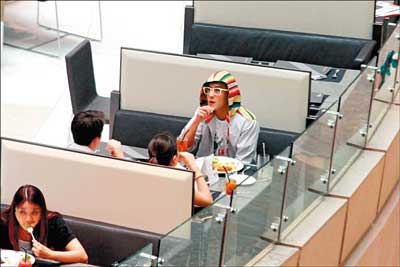 臺灣媒體消息,日前,陳冠希約了兩位外籍好友到人流極多的香港中環置地廣場露天茶座喝下午茶,不知是沒臉見人,還是真的患上人群恐懼癥,當天他穿了一件連帽外套,將外套的帽子蓋過大半個頭,還戴了一副米白色的粗框大眼鏡,他剛坐下就忙著把電話伸到桌底,神神秘秘地傳簡訊。起初他跟兩位朋友還有說有笑,但眼看客人漸多,開始不自覺地用手遮住半邊臉,鬼鬼祟祟的模樣令人發笑。