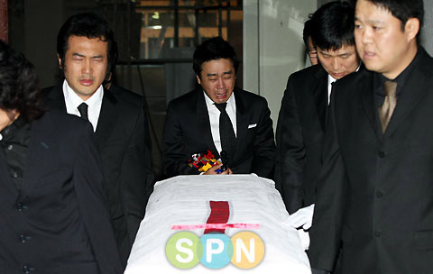 朝鮮日?qǐng)?bào)報(bào)道,10日上午,出殯儀式在京畿道一山白醫(yī)院殯儀館以基督教方式舉行。遺屬和李光基的演藝圈親朋好友等20多人出席。