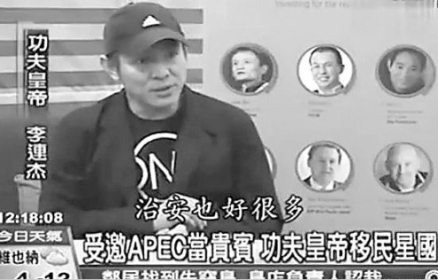 “功夫皇帝”李連杰移民新加坡一直是“公開的秘密”,日前他受邀以中小企業代表身份參加在新加坡舉行的APEC會議。當時主持人問他現在移民新加坡了,對新加坡有何看法,李連杰表示,相比其他城市,新加坡干凈很多,治安好很多,天氣也熱很多。同時他還透露,辦壹基金是靠妻子利智給錢。