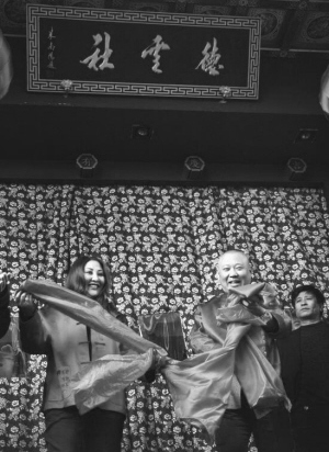 6日,德云社“新據點”舉行了熱鬧的開業慶典。大門口的正上方掛著郭德綱親筆題寫的匾額,郭德綱和妻子王惠穿著火紅的唐裝站在門口,一臉喜慶。據悉,由于郭德綱之前一直忙于演出,“新據點”的籌備都是妻子王惠一手操辦的,為了感謝妻子的付出,郭德綱在媒體的慫恿下當眾擁抱親吻愛妻,而王惠也因為這個意外的“起膩”舉動樂開了花。