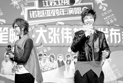 周筆暢、大張偉加盟江蘇衛視跨年演唱會新聞發布會昨日在京舉行。雖說大張偉年齡比周筆暢大,出道時間也比周筆暢長,但面對眼前這位“新人”,大張偉自稱“筆迷”,不僅極力討好,和周筆暢說起話來還一口一個“您”。
