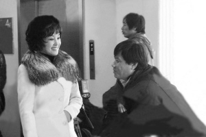 當(dāng)天記者在片場意外地看到了一個人———阿峰。他帶著兩位朋友到片場來探班,一見到劉曉慶便上前噓寒問暖,還禮貌地與片場的工作人員握手問好。劉曉慶拍戲時,阿峰就站在一邊看她演戲,有時還會走到監(jiān)視器前看鏡頭回放。