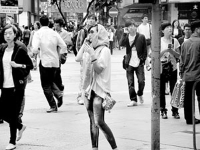 近日,有媒體拍到了歌手阿朵在香港銅鑼灣街頭逛街的照片。