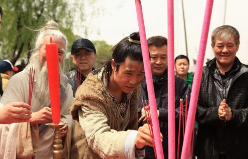 昨天上午,由博納影業、本山傳媒和延平工作室共同出品的賀歲新片《大笑江湖》在無錫影視基地正式開拍。博納影業總裁于冬和導演朱延平、武術指導程小東攜主演趙本山、小沈陽、程野出席了開機拜神儀式。隨著幾位主演正式投入拍攝,趙本山和小沈陽在片中的全新形象也正式曝光。扮演小鞋匠的小沈陽的扮相一改《三槍拍案驚奇》中的艷麗形象,變身古代帥氣熟男。據悉,小沈陽這次不只耍嘴皮子功夫,還要亮出自己二人轉底子的“真活兒”,拍攝大量的動作戲。