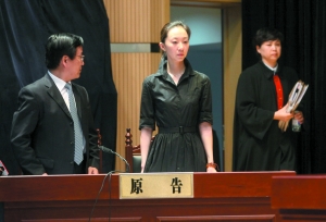 昨日下午,身穿黑色連衣裙的侯耀文之女侯瓚,在兩位律師陪同下,走進西城法院大法庭。侯耀文遺產案中的4個被告,只有郭曉小和牛成志本人到庭,郭曉小的妻子、侯耀華并未出現。