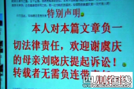 -“所謂誹謗謝晉的文章,我和宋祖德從沒寫過,也沒到網上上傳過,都是‘黑客’冒充我們的名字寫的。”