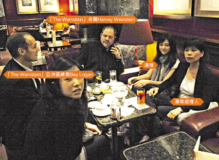 4月12日,湯唯與經(jīng)紀(jì)人及助手在香港中環(huán)文華東方酒店與“韋恩斯坦”老板Harvey Weinstein會(huì)面。現(xiàn)場(chǎng)所見,湯唯的英語(yǔ)非常流利。發(fā)現(xiàn)記者后,她面帶笑容,表現(xiàn)得體。在場(chǎng)的亞洲區(qū)總裁Bey Logan事后表示,Harvey Weinstein對(duì)湯唯大為贊嘆。Bey Logan說(shuō):“那天我們和湯唯只是一次很簡(jiǎn)單的聚會(huì),主要是想先了解一下她。她是一個(gè)不可多得的人才,會(huì)講廣東話、普通話和英文,很不錯(cuò)。”問(wèn)到是否已有好萊塢導(dǎo)演邀湯唯合作,他說(shuō):“一定有啦!如果有適合的角色,我們肯定會(huì)找湯唯。”