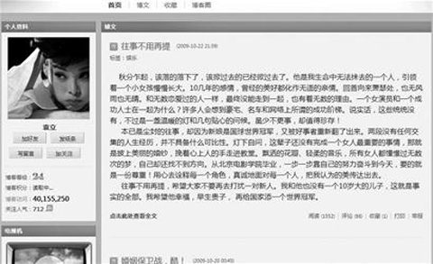 袁立昨晚在博客上首次回應與張怡寧新婚丈夫徐威的舊日戀情