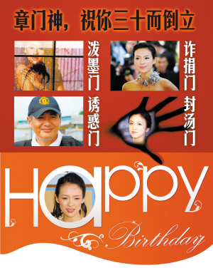 前天是2月9日,章子怡31歲生日,繼“潑墨門”、“詐捐門”、“誘惑門”(周潤發(fā)稱出演《臥虎藏龍》時曾受到某女星誘惑,網(wǎng)友紛紛將懷疑對象鎖定章子怡)之后,如今又誕生了一個新的八卦“門”———“封湯門”:導演陸川微博發(fā)文引網(wǎng)友熱議,章子怡被指疑似封殺湯唯幕后黑手。