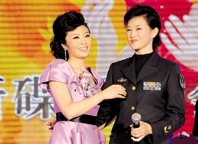 中新網12月24日電 (李季)23日下午,著名女高音歌唱家李丹陽在北京舉行新年新碟視聽會,徐沛東、金鐵霖、閻肅、郁鈞劍、楊洪基、濮存昕、潘長江等眾星悉數現身,宋祖英以李丹陽“閨蜜”身份出席;顒蝇F場,當進行默契大考驗環節時,兩位好友對于誰先“發言”互相推讓,宋祖英不想搶好友風頭直說“你是主角你先說”,李丹陽則稱“你是團長你先來”。