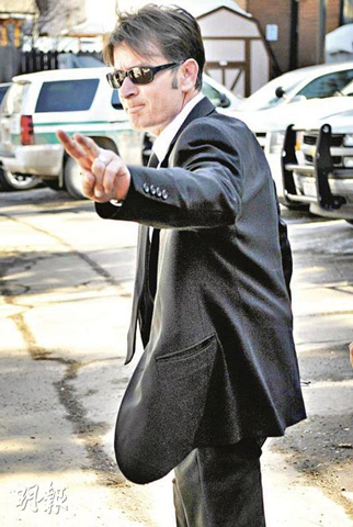 中新網3月17日電 據香港“明報”消息,前天,美國高收視劇集《戇男兩個半》男星查理.辛(Charlie Sheen)因去年圣誕節涉嫌毆打兼用刀指嚇妻子波姬。慕娜(Brooke Mueller)一案上庭,他否認控罪,更在離開法庭時擺出勝利手勢。