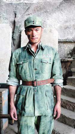 在電影版《紅日》中,著名演員楊在葆演繹的解放軍連長石東根形象深入人心。這是一個用戰刀挑著敵人的鋼盔,縱馬揚鞭自在豪情的“不怕死”的鐵漢英雄。這一經典角色對青年演員的要求頗高,既要塑造人物扎實質樸,又要有市場號召力。最終,從眾多一線小生中,耿樂脫穎而出,與李幼斌、尤勇組成中青年《紅日》“夢幻組合”。該劇尚未拍攝,播出權就被各大電視臺一搶而空。