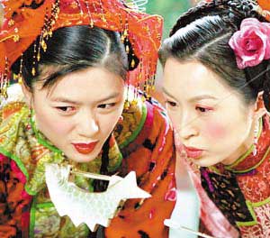 《李小環(huán)與苗翠花》里的兩位女主角田海蓉、郭藹明是一對(duì)師出同門(mén)、并肩走江湖的“奪命花環(huán)”的姐妹花;“文弱書(shū)生”方德也變成了拳腳了得的方天橫,功夫甚至比李小環(huán)與苗翠花更勝一籌,讓兩姐妹情不自禁地拜倒在他的魅力之下。“再好的姐妹只要喜歡上同一個(gè)男人,肯定都會(huì)翻臉,我和李小環(huán)在戲中整天為了方德吵架甚至大打出手,每次都搞得衣冠不整的。”郭靄明說(shuō)起和田海蓉的合作,臉上露出嬌柔的微笑:“雖然戲里我們是情敵,但是拍起來(lái)可是非常有默契,每次演的時(shí)候,不用導(dǎo)演多解釋?zhuān)覀儽舜艘粋(gè)眼神就夠了。而戲外,我們簡(jiǎn)直就是連體嬰兒,好得‘難舍難分’,海蓉特別照顧我,比如我的頭飾歪了,她就會(huì)細(xì)心地幫我弄好,所以拍這部戲最大的收獲就是讓我結(jié)識(shí)了一個(gè)好姐妹。”(記者 陳羽中)